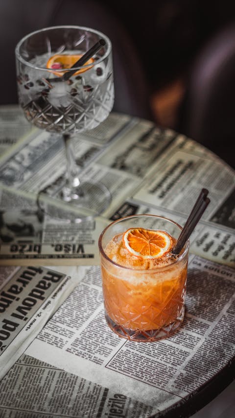 nudi istarski premium gin Karbun koji se poslužuje s komadićem aktivnog ugljena.